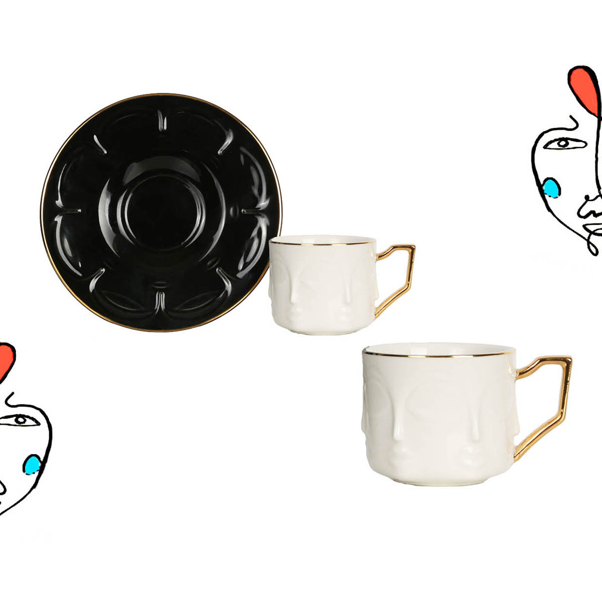 Luck Art Fincan Takımı Illustration Black-Gold 12 Parça