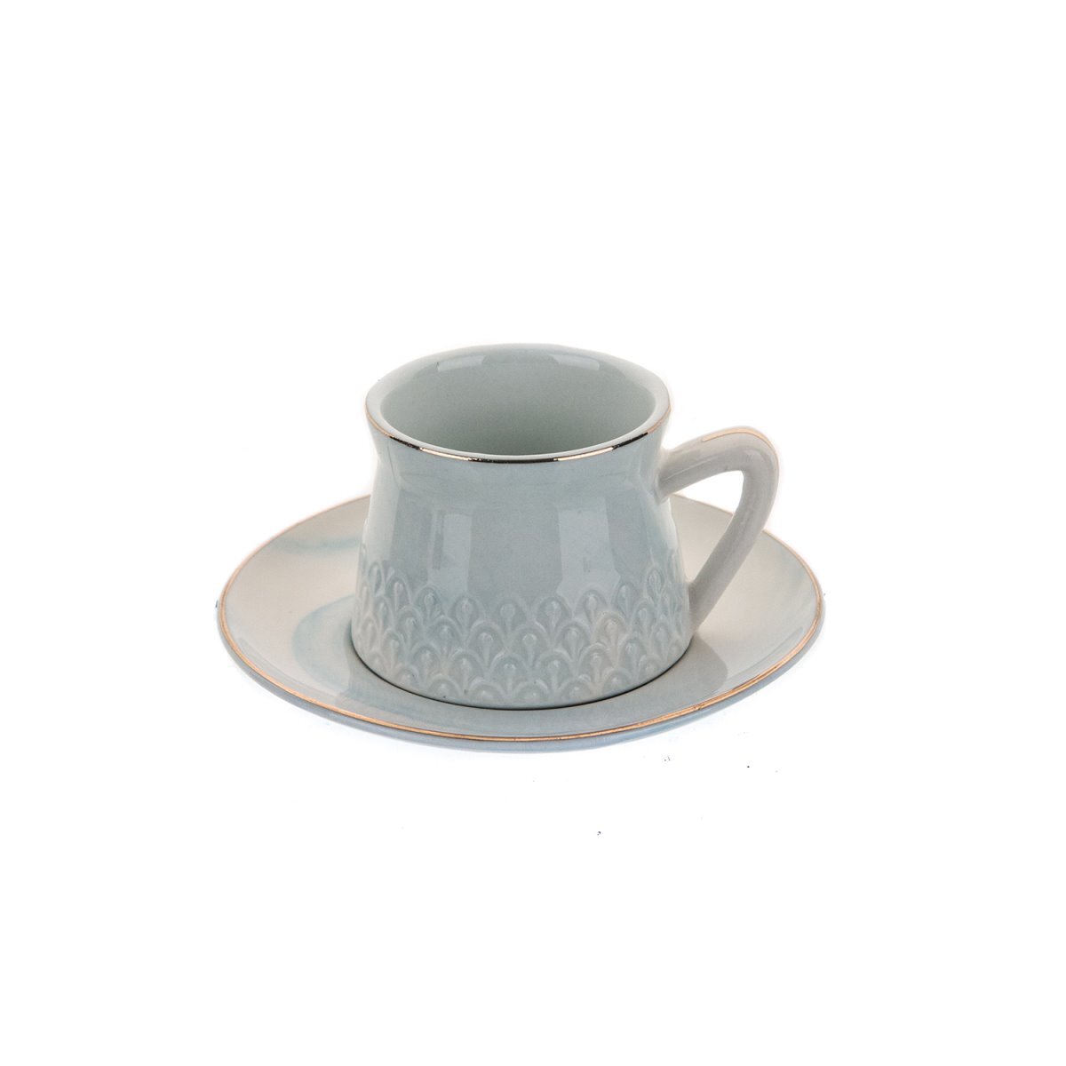 Marianna Kabartmalı Açık Mavi 6 lı Türk Kahvesi Fincanı Takımı