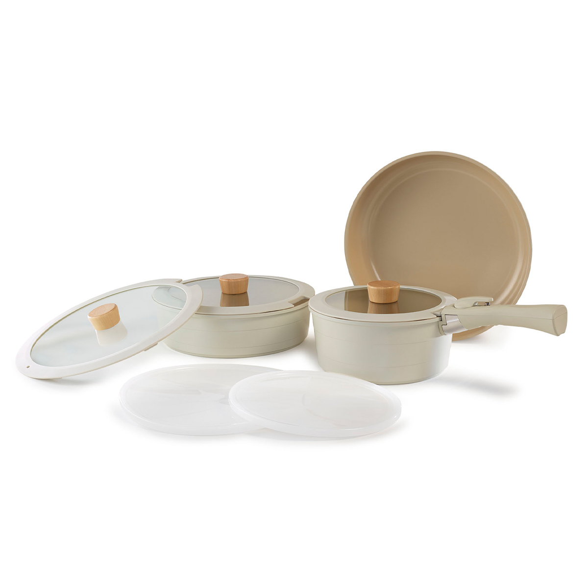 Midas Alüminyum döküm çıkarılabilir saplı tencere seti, yemeklerinizi pişirmek için mükemmel bir seçimdir. Yemeklerinizi set içeriğindeki herhangi bir pişiricide pişirebilir ve saklayabilirsiniz.
