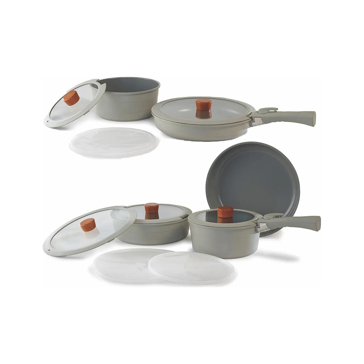 Midas Alüminyum döküm çıkarılabilir saplı tencere seti, yemeklerinizi pişirmek için mükemmel bir seçimdir. Yemeklerinizi set içeriğindeki herhangi bir pişiricide pişirebilir ve saklayabilirsiniz.