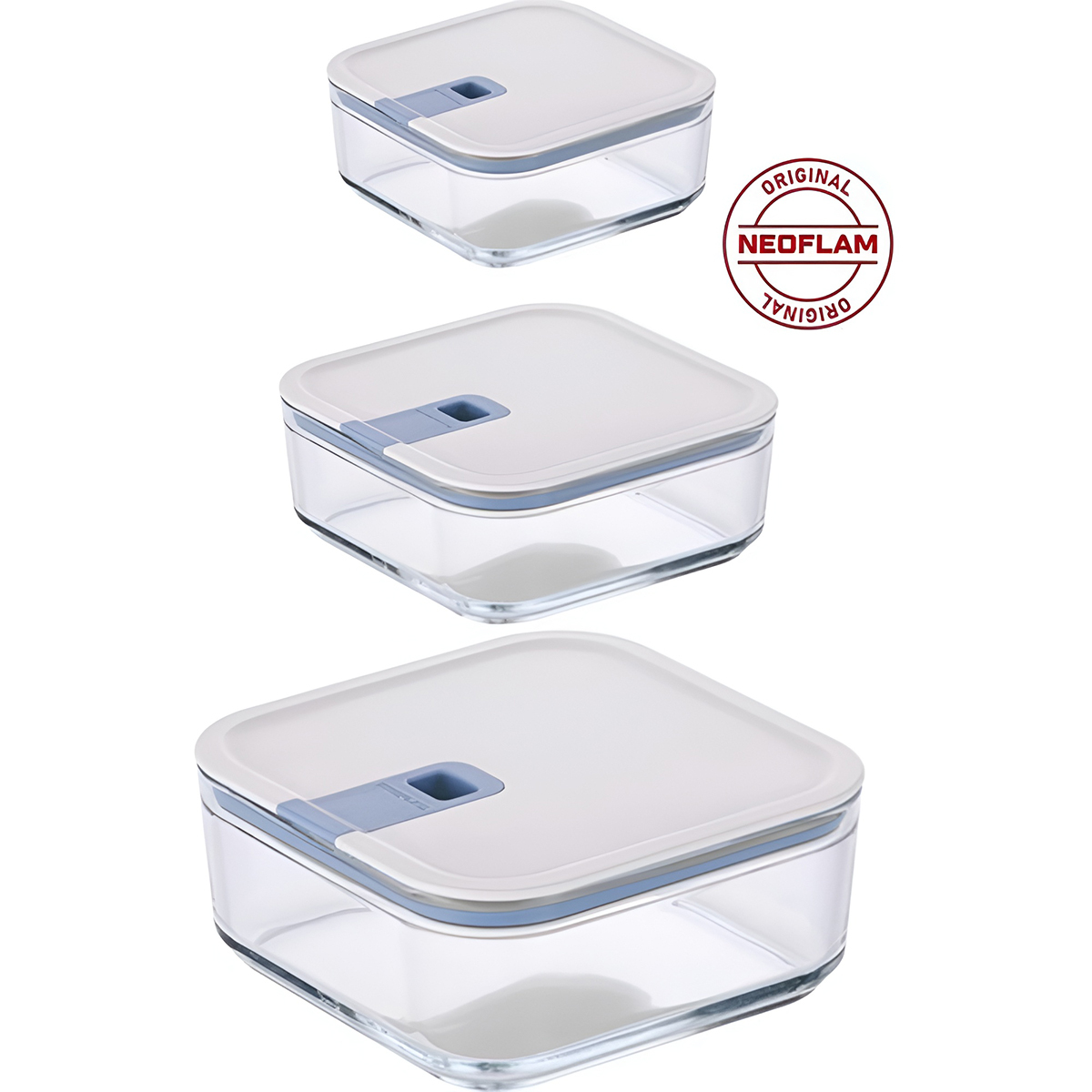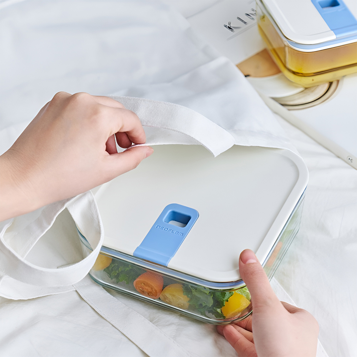 Neoflam Perfect Seal dikdörtgen cam saklama kabı, mükemmel tasarımı ve 400 derece ısıya dayanıklı borosilikat cam gövdesi ile yiyeceklerinizi uzun süre ilk günkü tazeliğinde korur.