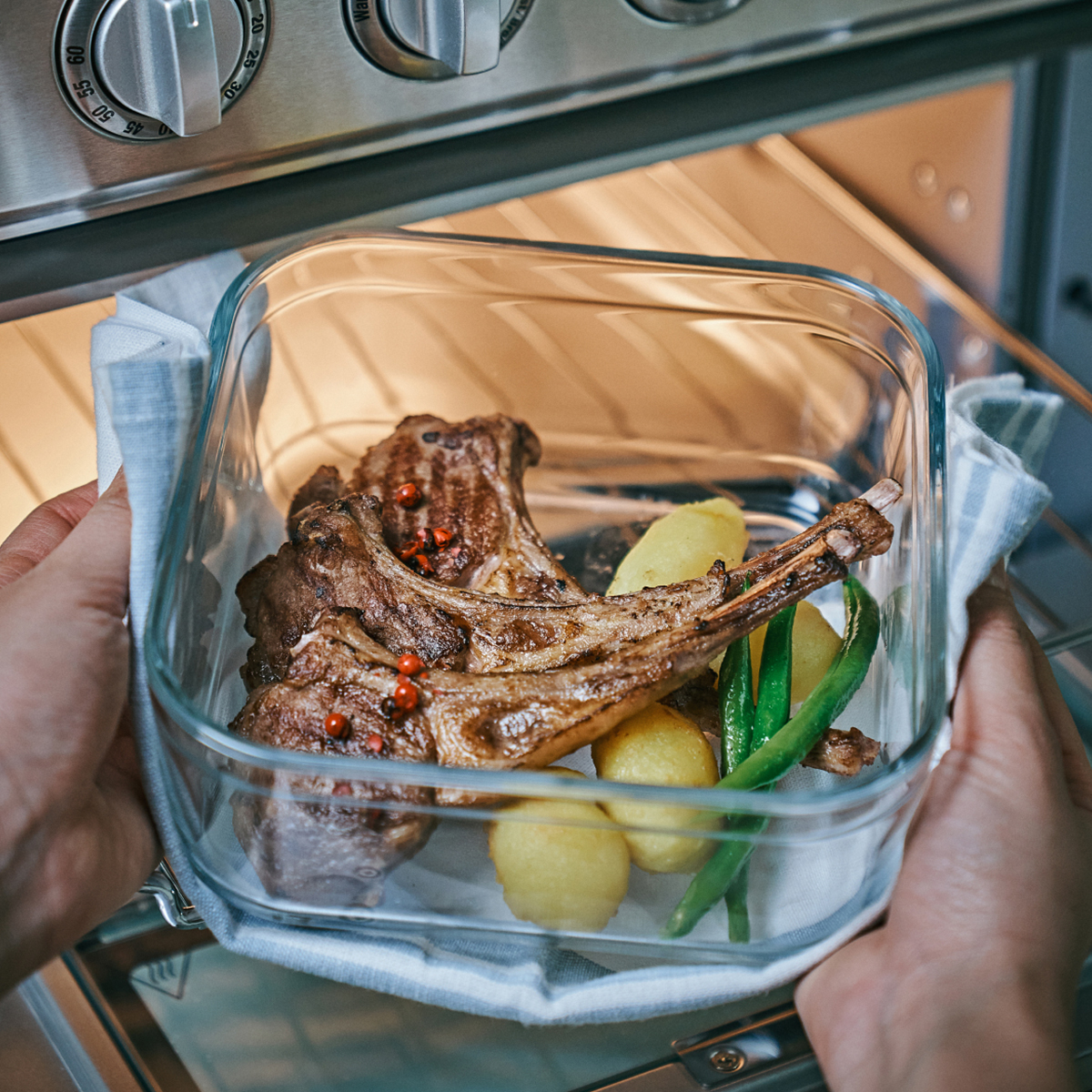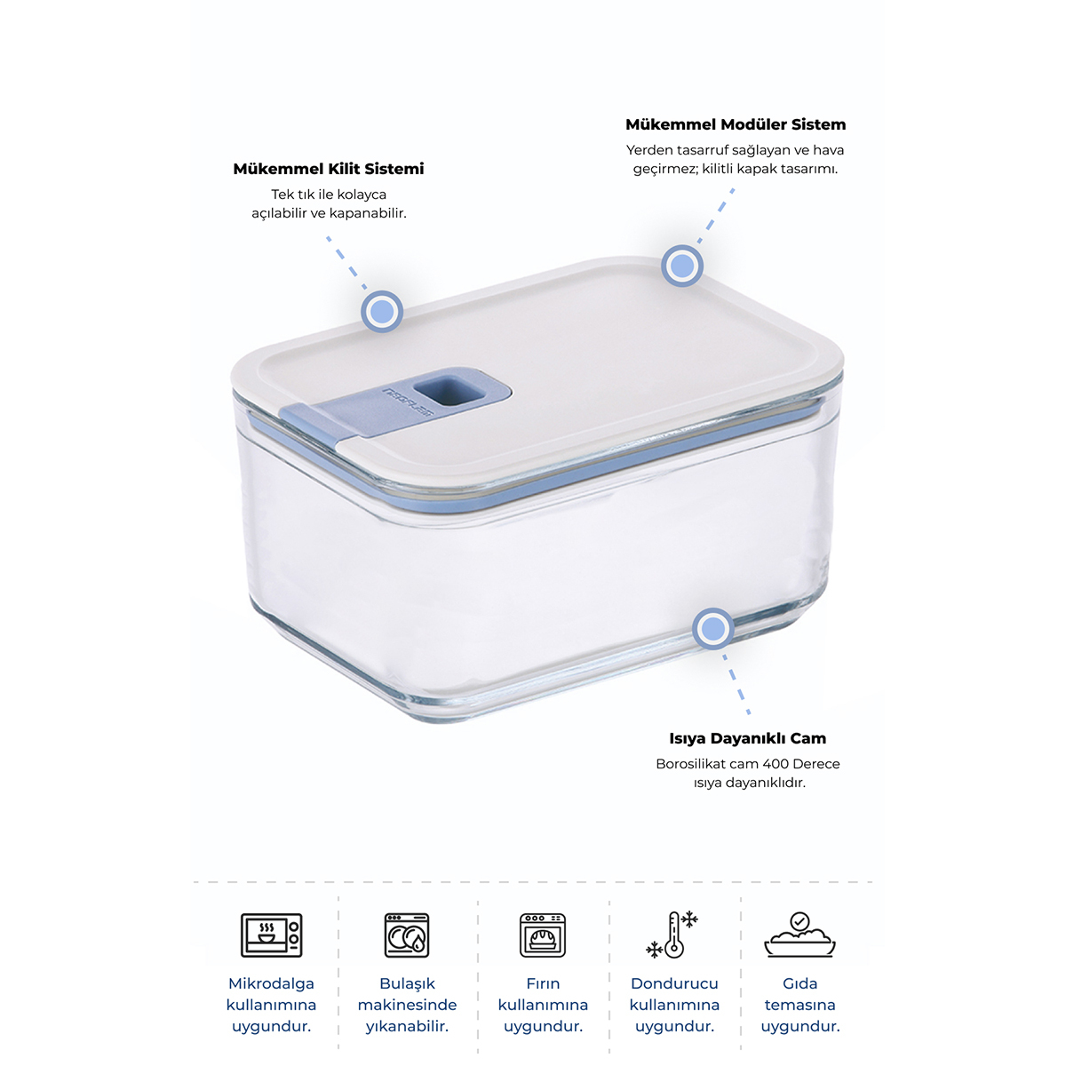 Mükemmel hava mührü ve koruması sağlayan tasarımı ile buzdolabından, derin dondurucuya kadar saklama imkanı sunarken, borosilikat malzemesinden üretilen gövdesi ile normal fırın ve mikrodalgada yiyeceklerinizi ısıtma imkanı sunar.