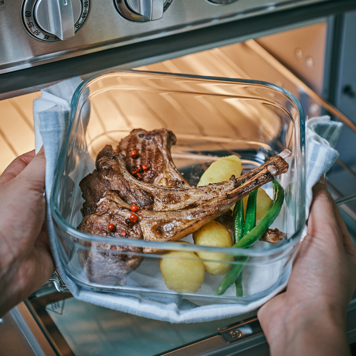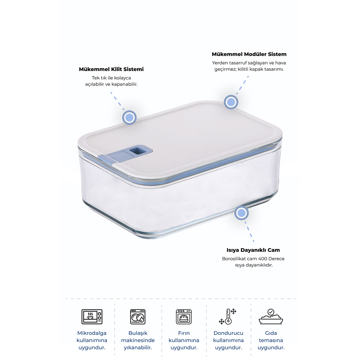 Mükemmel hava mührü ve koruması sağlayan tasarımı ile buzdolabından, derin dondurucuya kadar saklama imkanı sunarken, borosilikat malzemesinden üretilen gövdesi ile normal fırın ve mikrodalgada yiyeceklerinizi ısıtma imkanı sunar.