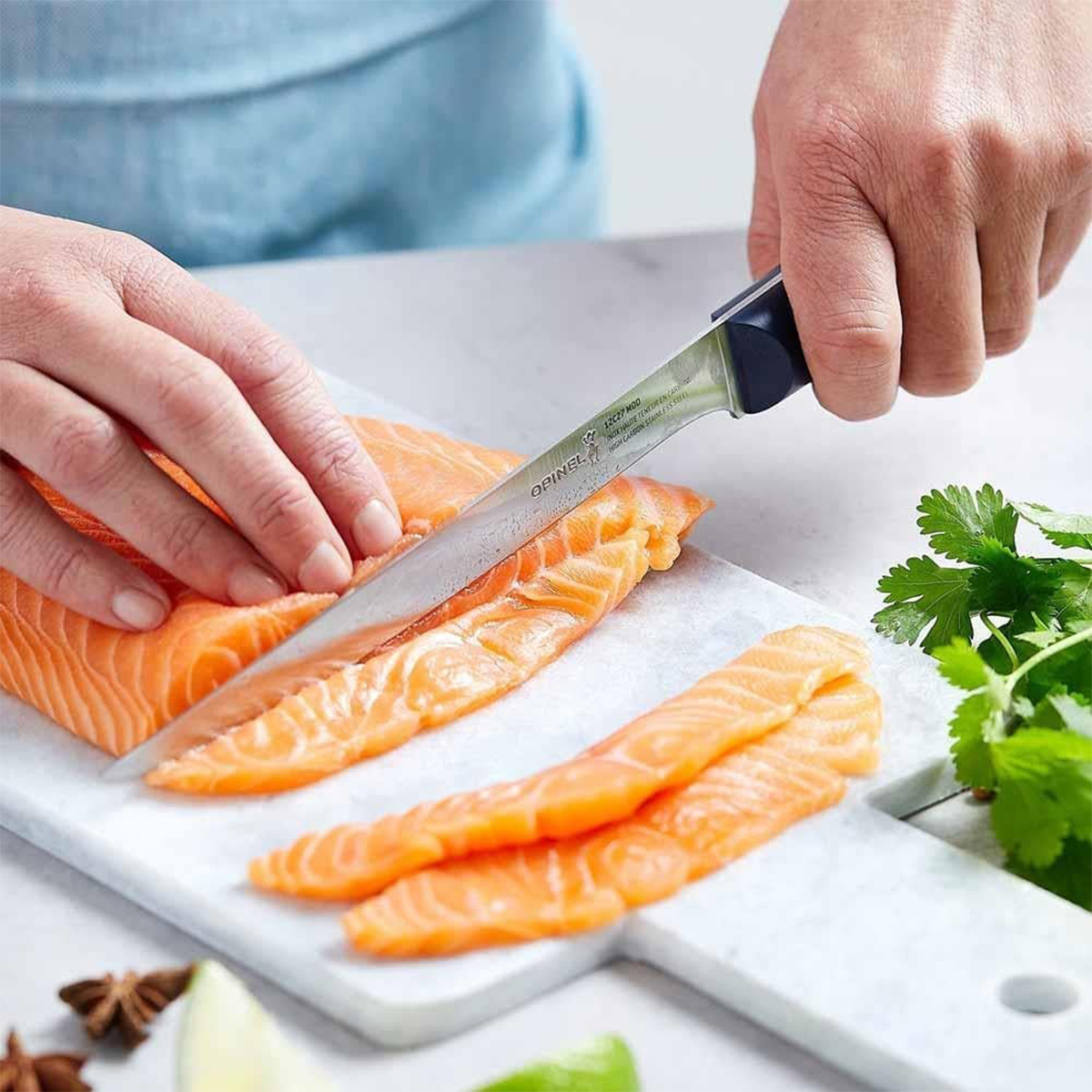 İnce ve esnek bıçağı, balıkları kesmek ve fileto yapmak, derisini ve kılçıklarını çıkarmak için.