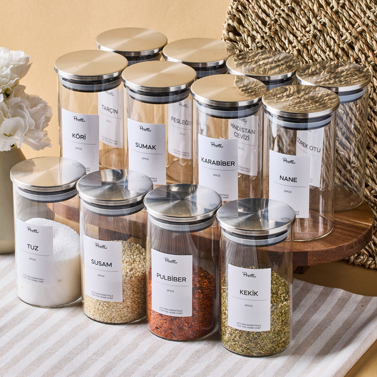 Gelince Haber VerAurelia 12'li Metal Kapak Borosilikat Cam Baharatlık Seti, mutfaklarınızda hem düzen hem de şıklığı bir arada sunuyor.