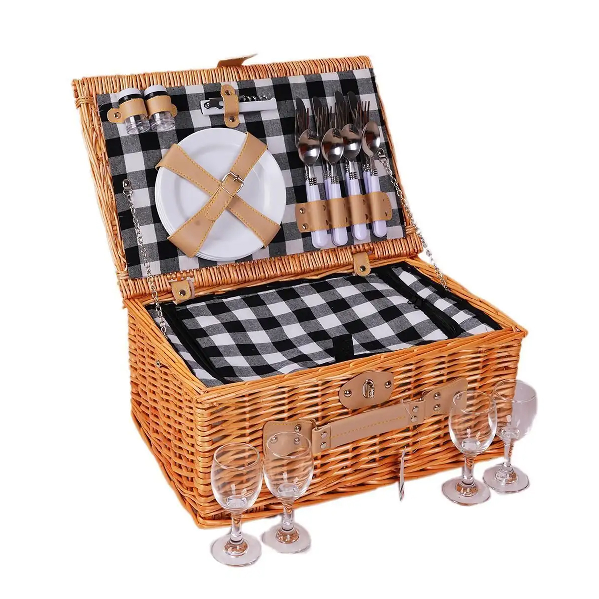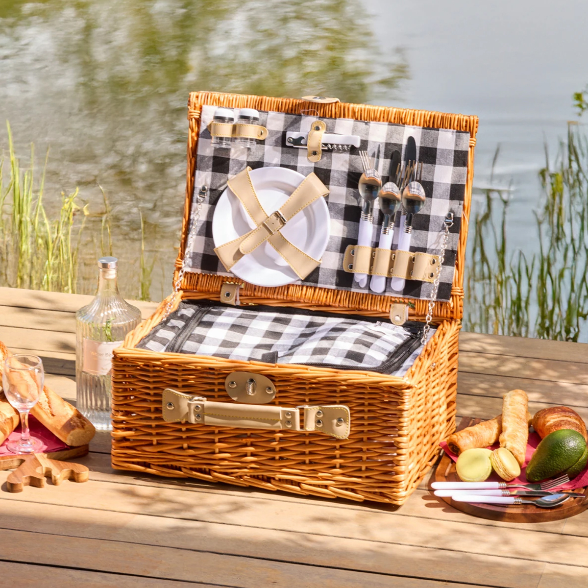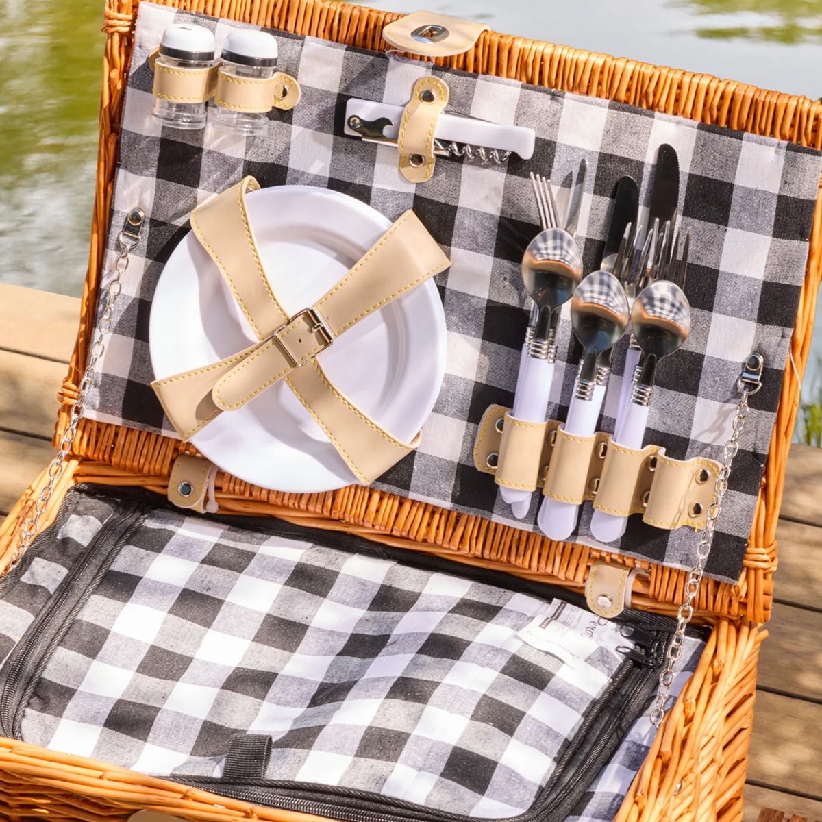 Perotti Cestino Italy Siyah Ekose Astarlı 4 Kişilik Piknik Sepeti