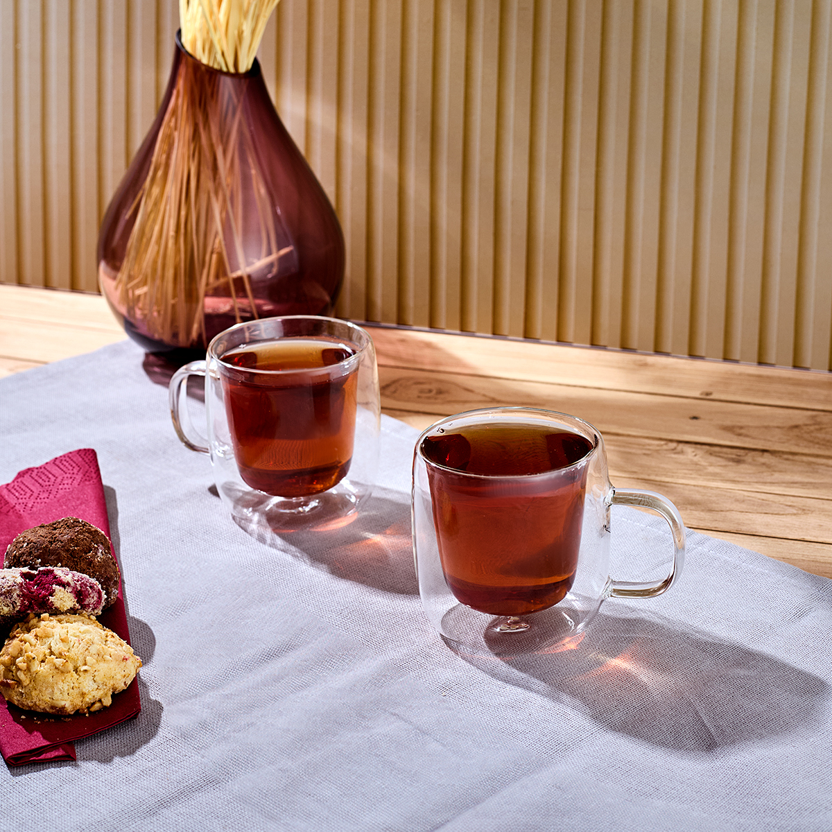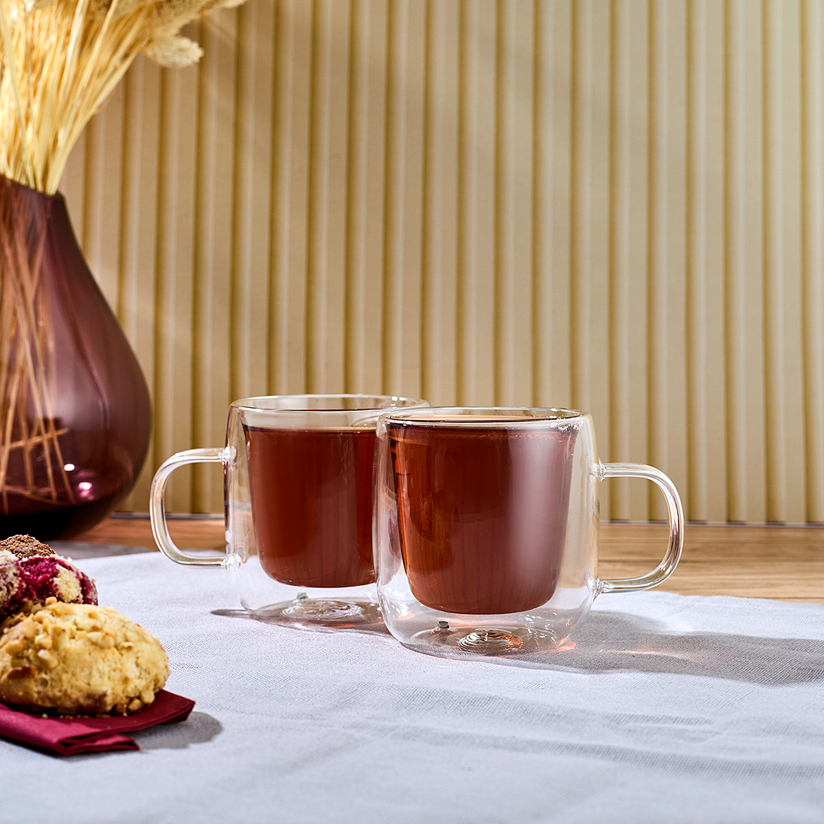 Gelince Haber VerŞeffaf gövde ve çift cam tasarımlı kupa hoş sohbetlerin yanında keyifli bir içecek deneyimi sunar.