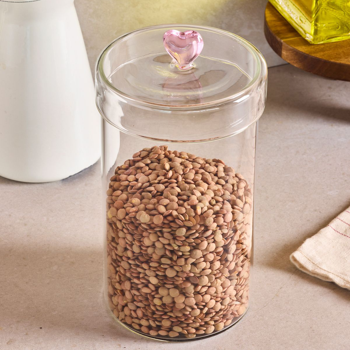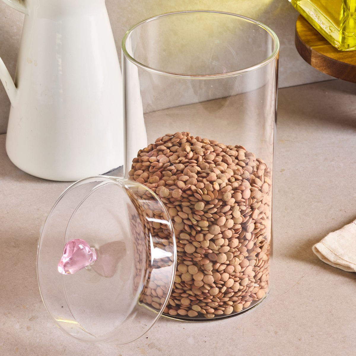 Gelince Haber VerHearts 1150 ml Borosilikat Cam Kavanoz, zarif ve şık tasarımıyla mutfaklarınıza estetik bir dokunuş katıyor.