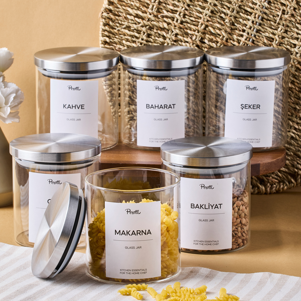 6’lı set halinde sunulan bu kavanozlar, mutfakta birden fazla kullanım için idealdir.