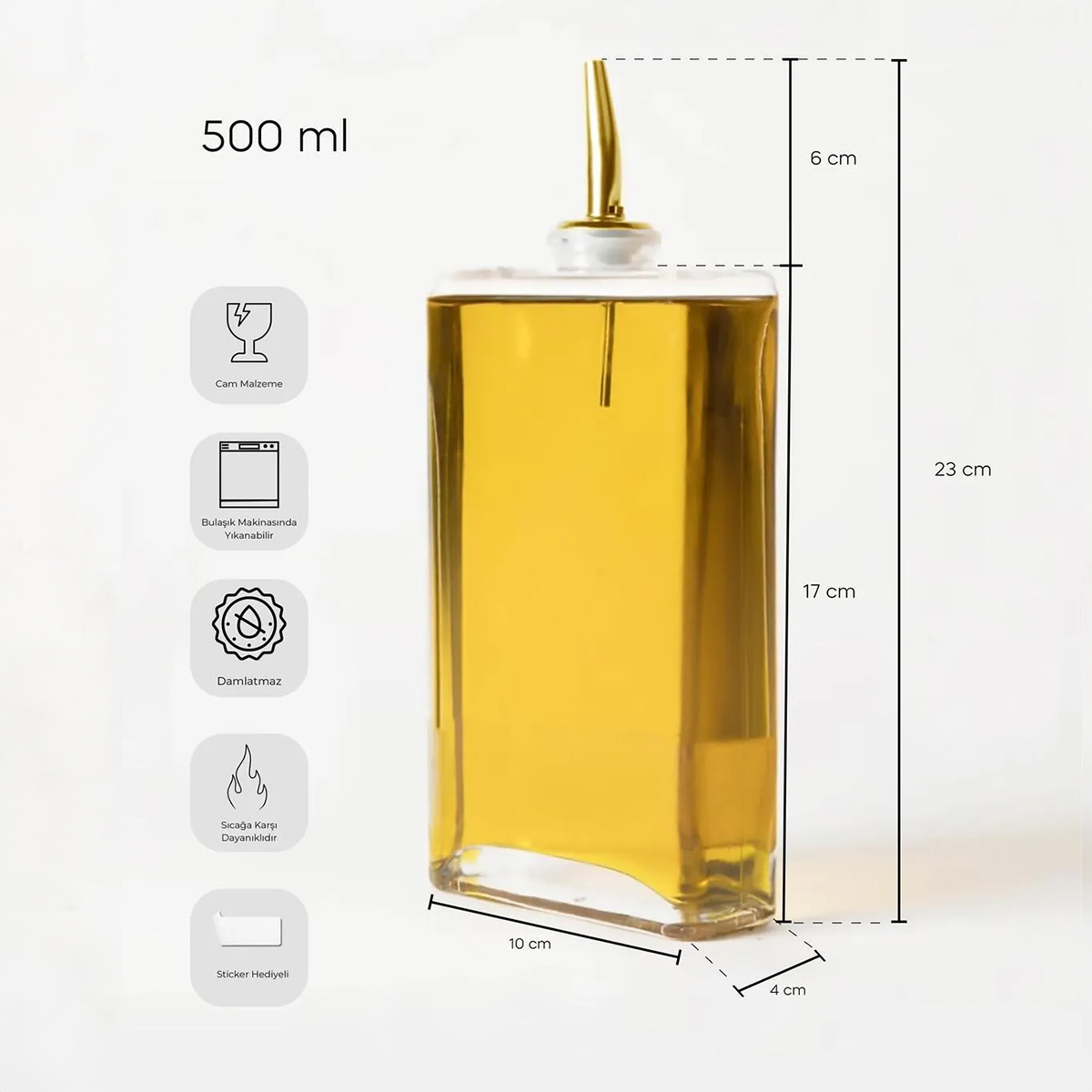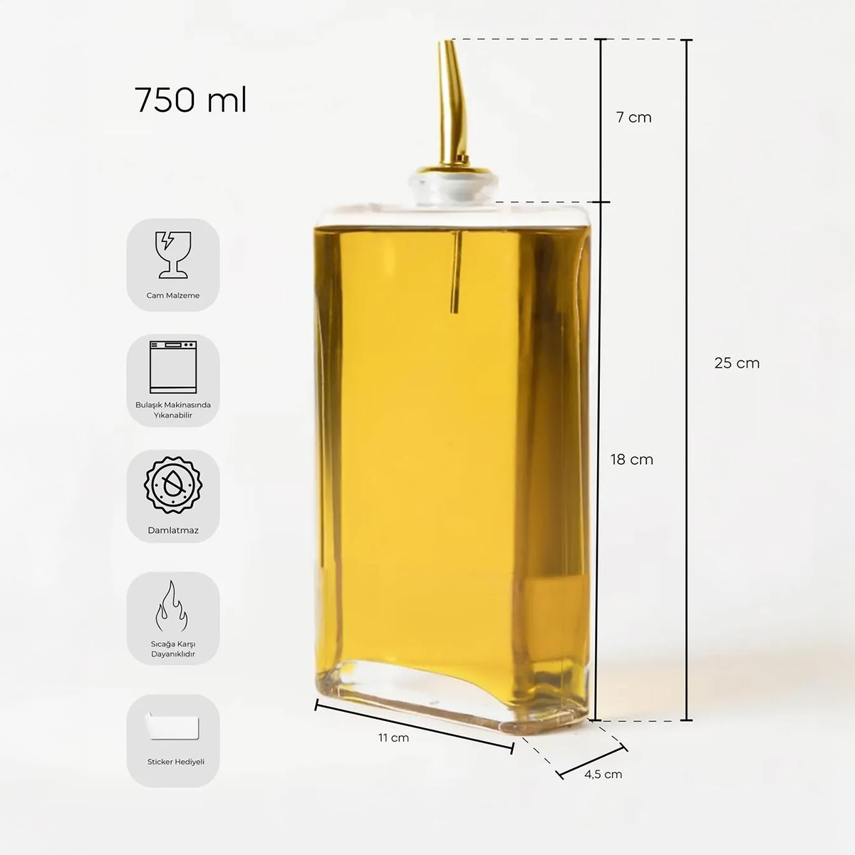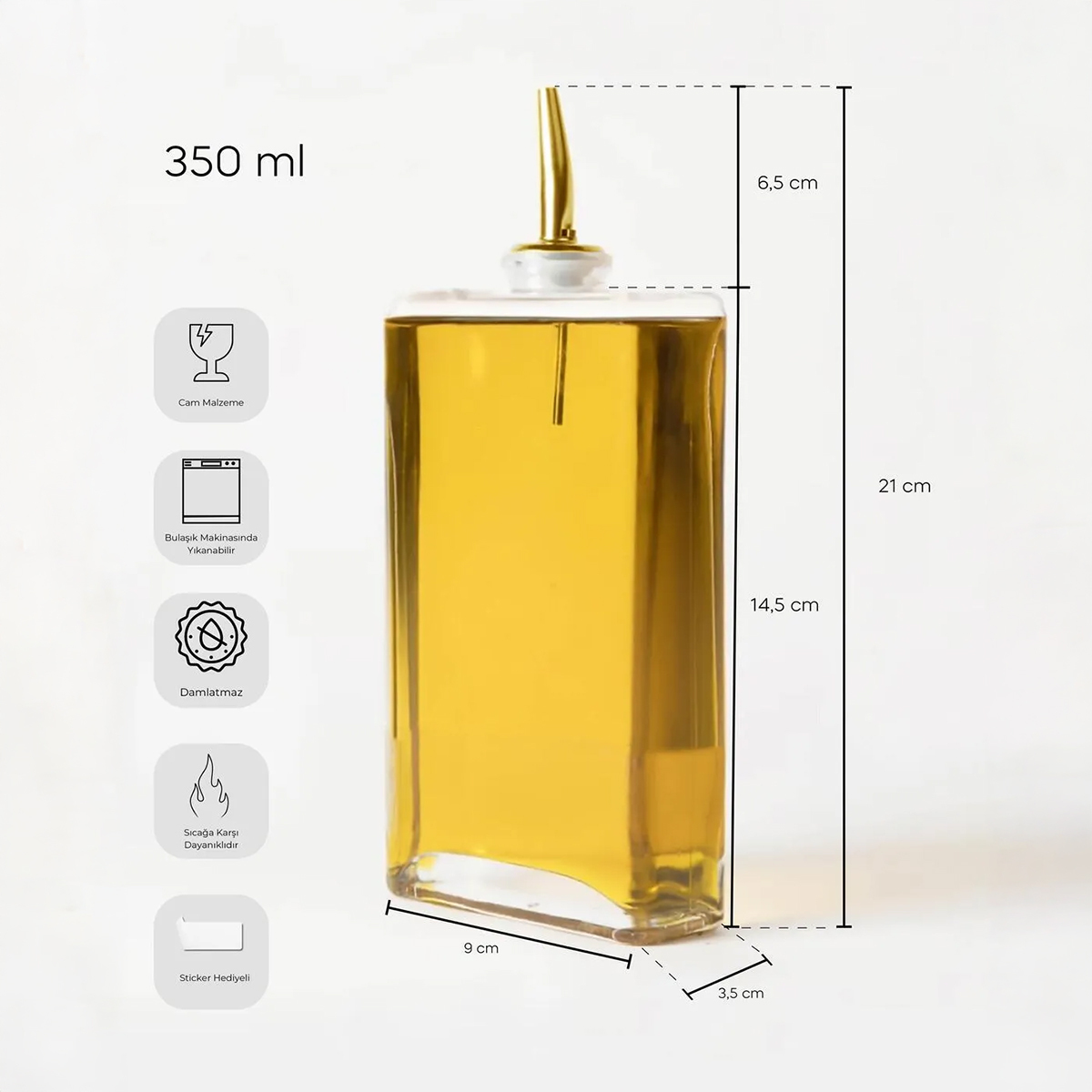 Çok Amaçlı Kullanım: Yağ, sirke, zeytinyağı gibi sıvıların yanı sıra çeşitli soslar için de kullanılabilir. Çok yönlü tasarımı, mutfakta her türlü ihtiyaca cevap verir.