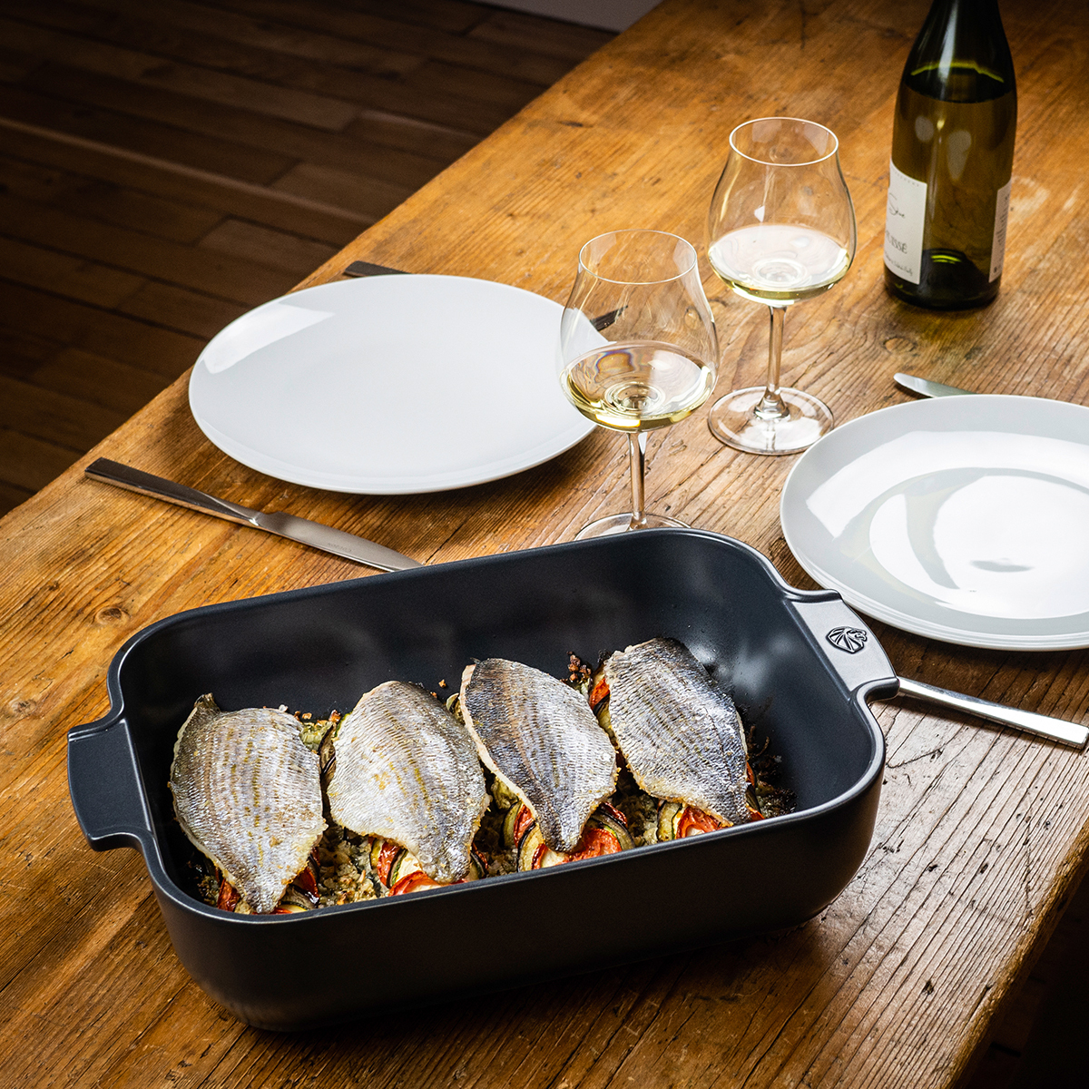 40 cm'lik dikdörtgen Appolia güveç kabı, büyük et ve balık parçalarının yanı sıra lezzetli ızgaralar ve sebze güveçlerini pişirmek için idealdir.