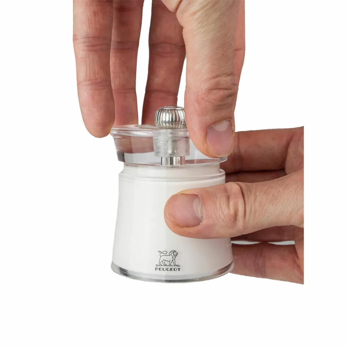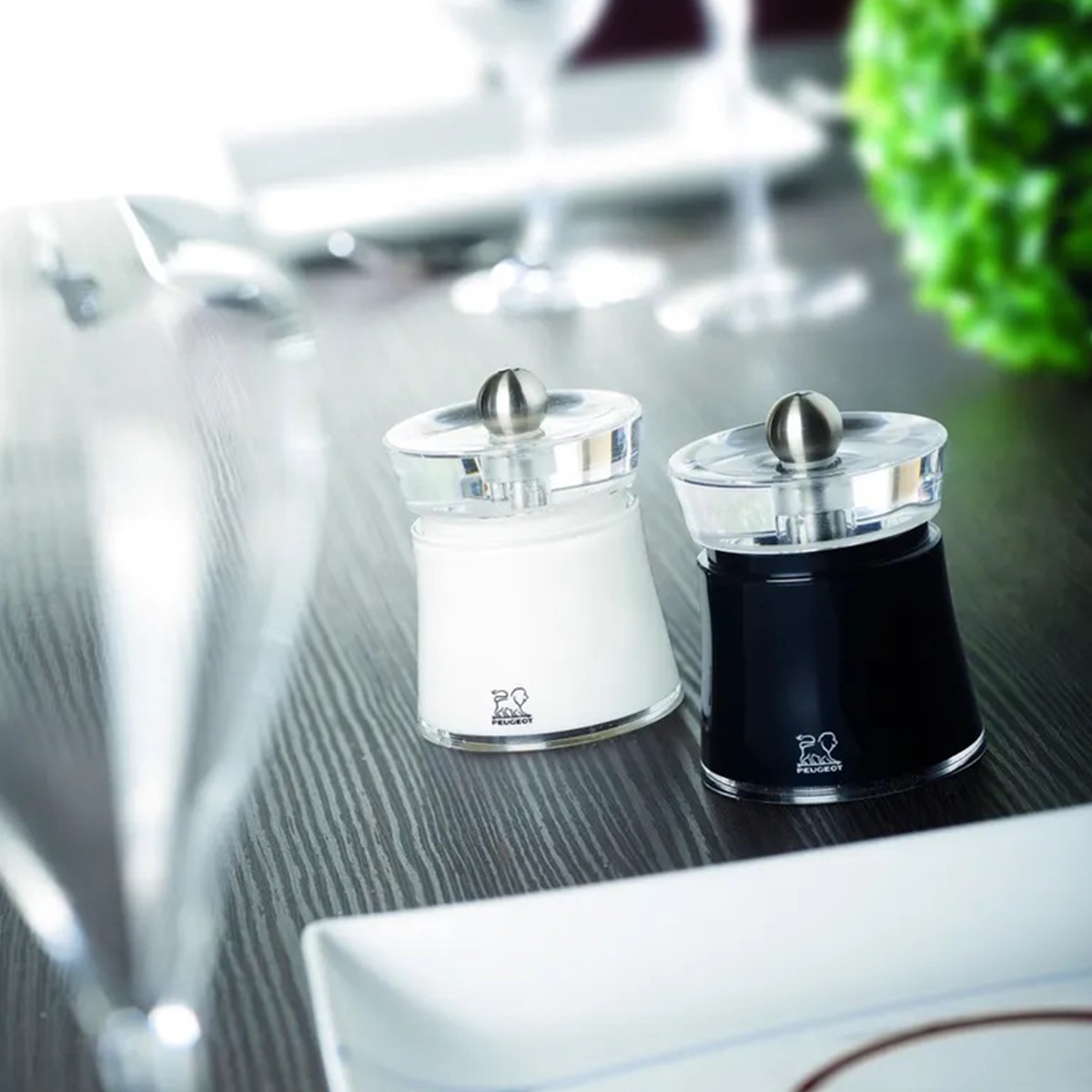 Zarif bir iç mekanı ortaya çıkaran şeffaf akrilik muhafazasıyla Bali tuz değirmeni gerçek bir Peugeot mücevher kutusudur.