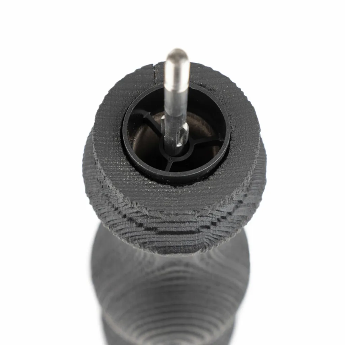İki sıra spiral dişten oluşan karabiber öğütücü, mükemmel öğütme için karabiberleri yönlendirir ve tutar. Karabiber değirmeninin öğütücü çeliği korozyona karşı işlem görmüştür.