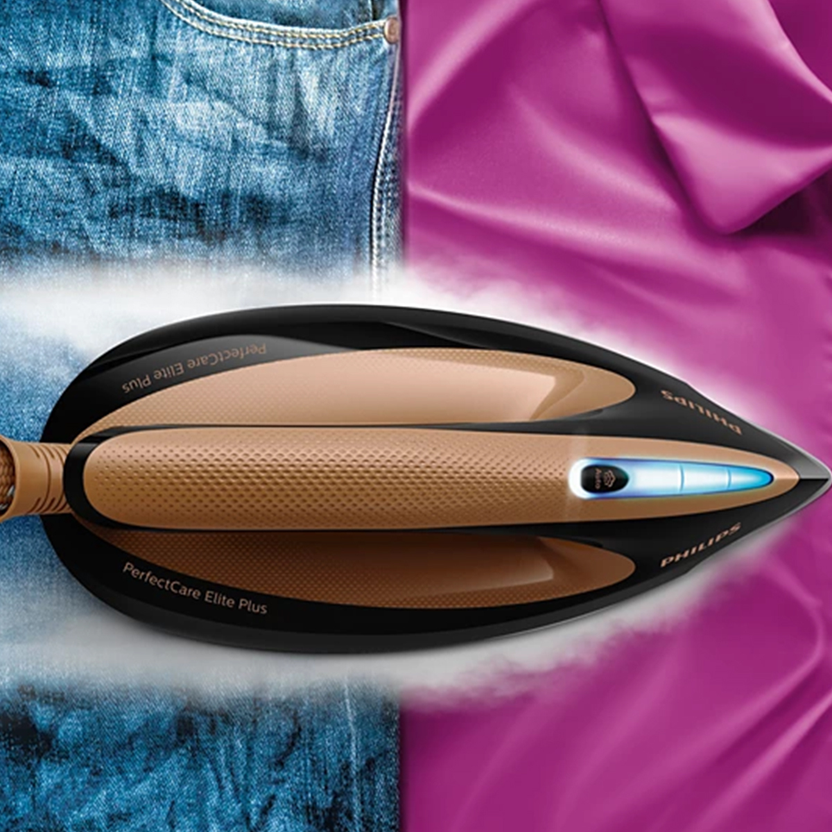 Philips PerfectCare Elite Plus GC9682/80 2700 W Buhar Kazanlı Ütü, titanyum oksit tabanı ve akıllı otomatik buhar özelliği sayesinde ısı ayarı gerektirmeden kaşmir ve tül gibi narin kumaşları dahi yanma tehlikesi olmadan kusursuz bir şekilde ütülüyor.