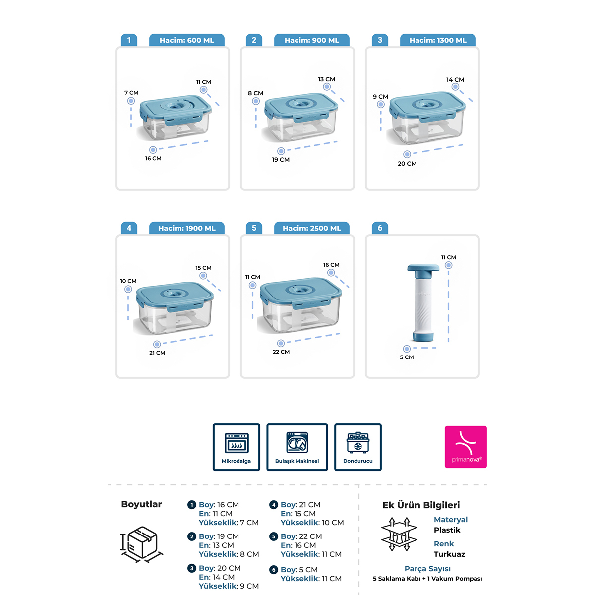 Primanova Royal Seoul Taze Ürün Saklama Kabı Seti 6 Parça