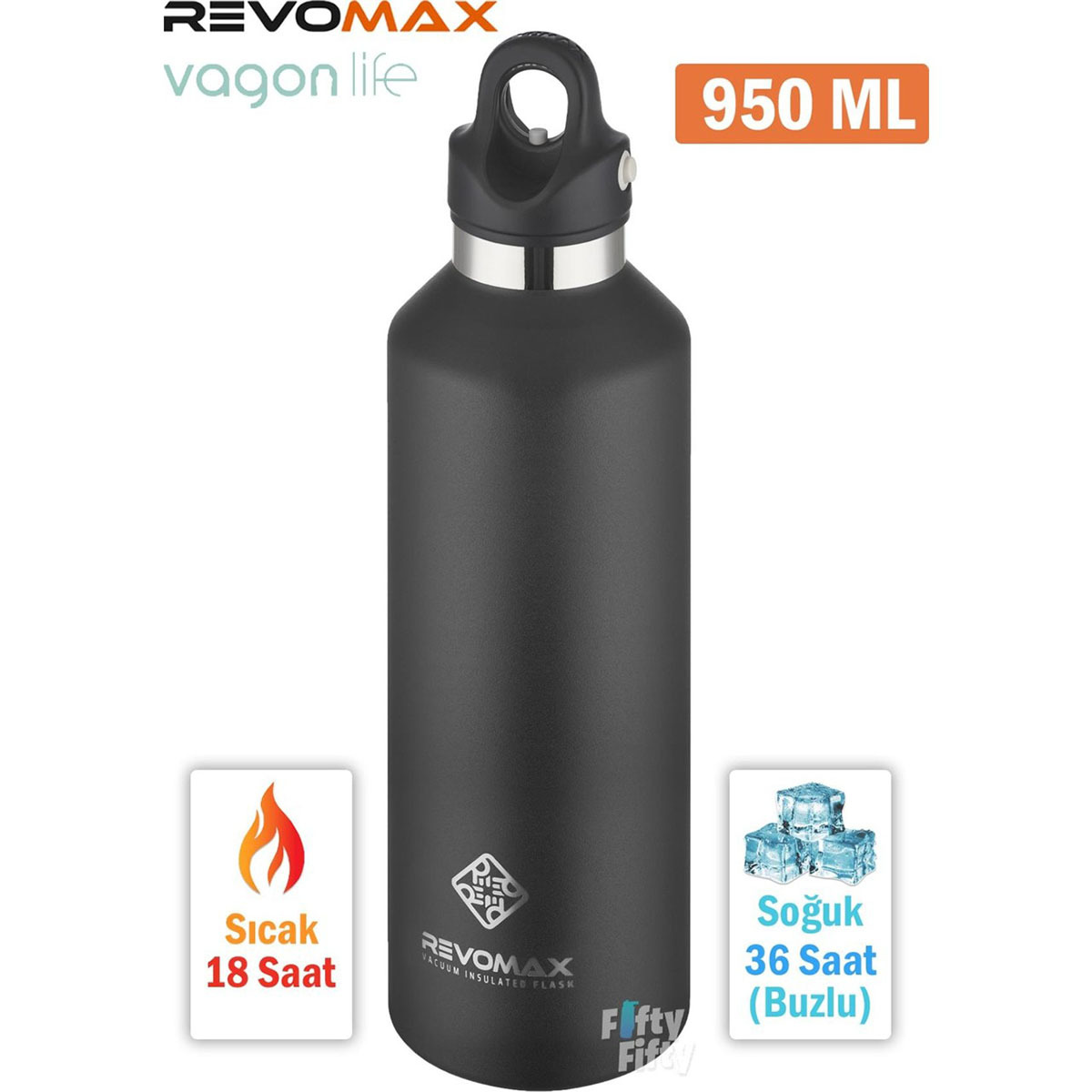 Revomax Paslanmaz Çelik Vakumlu Matara Siyah 950 ml
