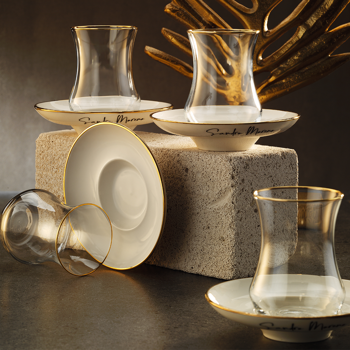 Sandro Moreno 1898 Line Gold 12 Parça 6 Kişilik Çay Seti 110 ml