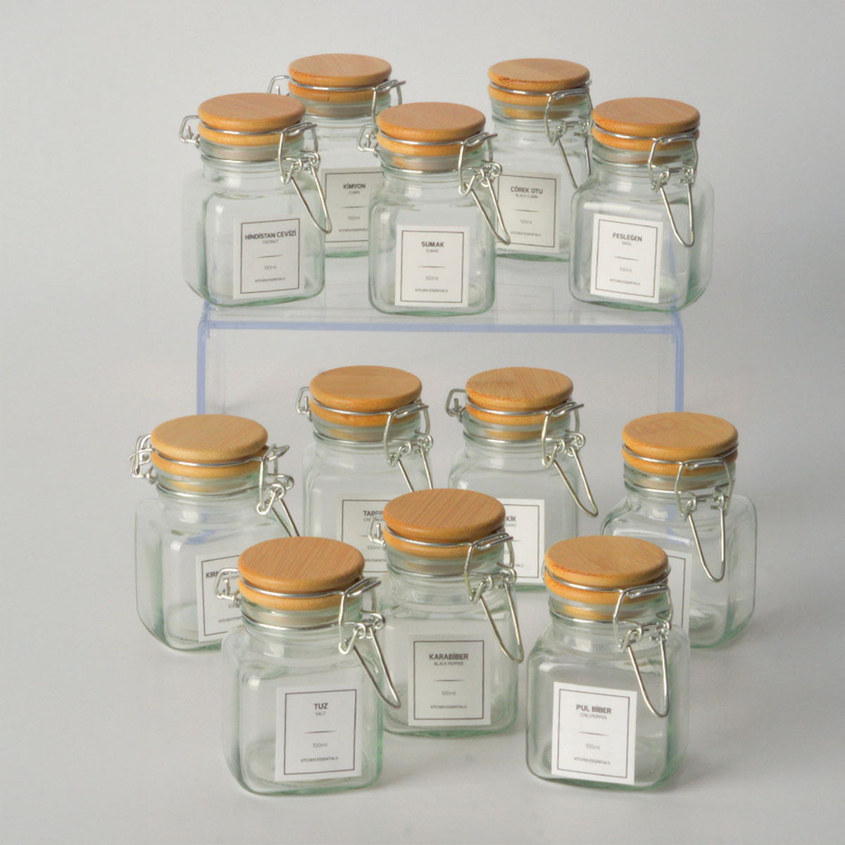 Tohana Bambu Kapaklı Kelepçeli 12'Li Cam Baharatlık
