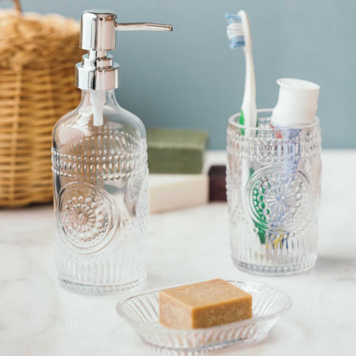 Banyo setimizin içinde sıvı sabunluk , diş fırçalık ve katı sabunluk bulunur.