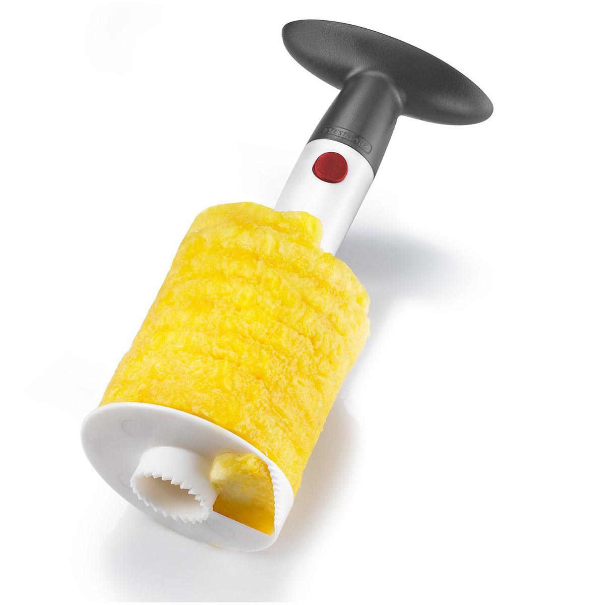 Pratik ananas dilimleyici, tek bir adımda ananasın çekirdeklerini çıkarır, kabuklarını soyar ve dilimler; böylece lezzetli meyve salataları, meyve tabakları, tatlılar ve müsli hazırlayabilirsiniz.