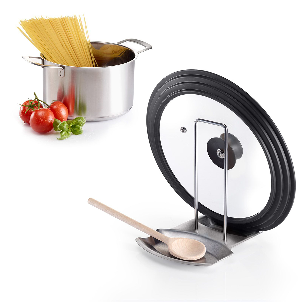 Kapağımız ve kaşıklığımız sayesinde mutfak gereçleriniz her zaman elinizin altında olur ve çalışma yüzeyiniz temiz kalır.