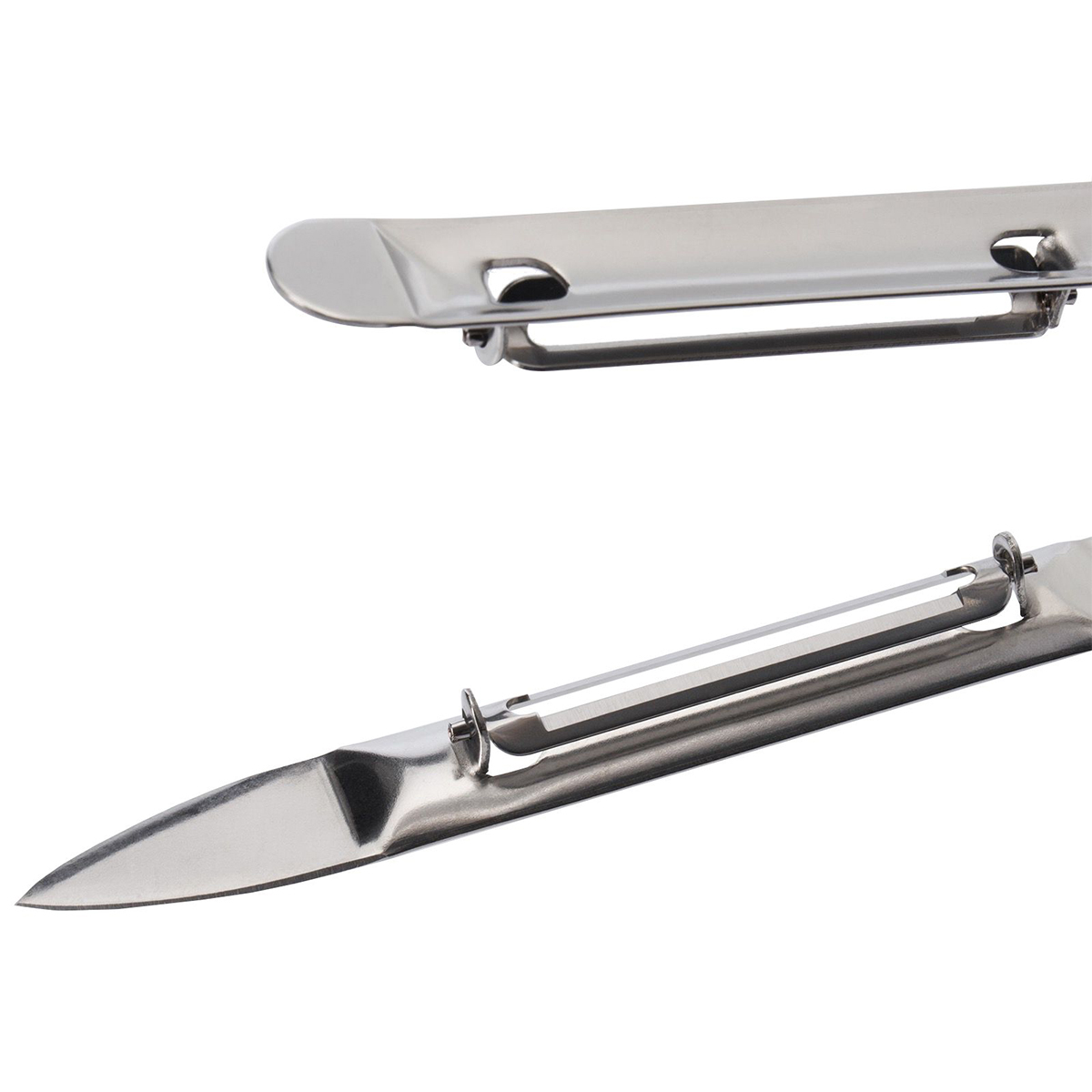 Çift taraflı kuşkonmaz soyacağı olarak, birbirine bakan iki bıçağa sahiptir, böylece uzun sebzeleri iki kat daha hızlı soyabilirsiniz.