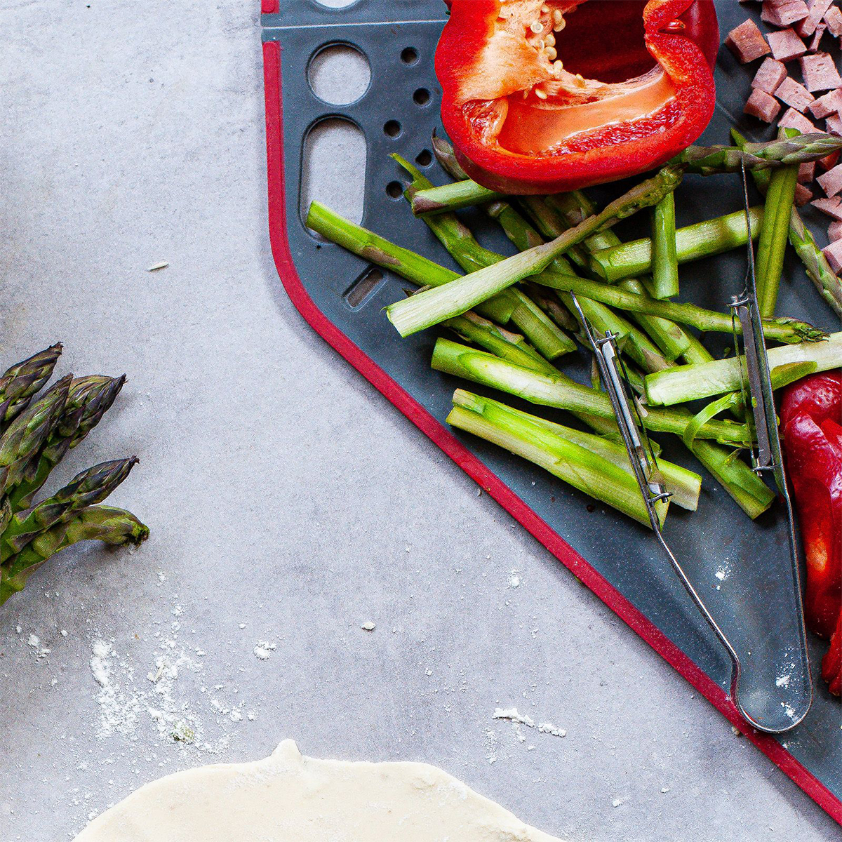 Kuşkonmazda kullanıldığında, ikinci bıçak yumuşak kuşkonmazın sapını dengeleyerek sebzenin kırılmasını önler.
