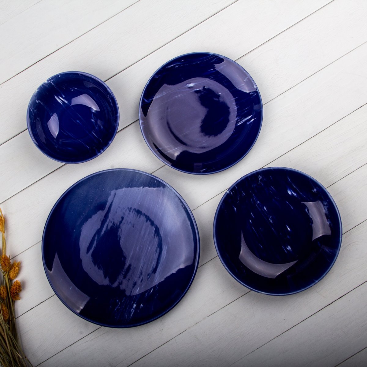 Yegane 24 Parça Yemek Seti Ebru Transparan Mavi Beyaz